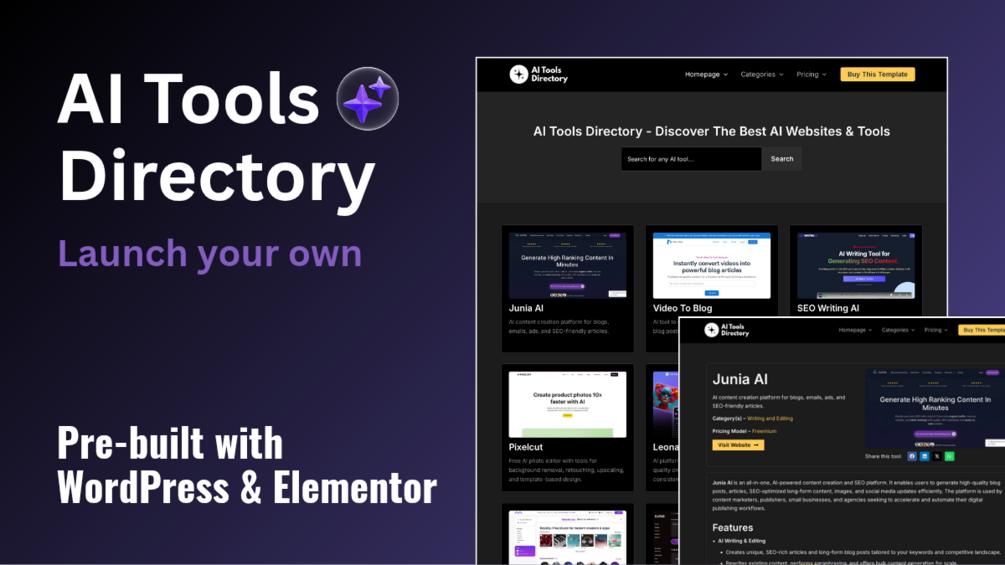 This is a ready-to-use AI tools directory website built with WordPress. It’s perfect if you want to launch your own directory without starting from scratch.