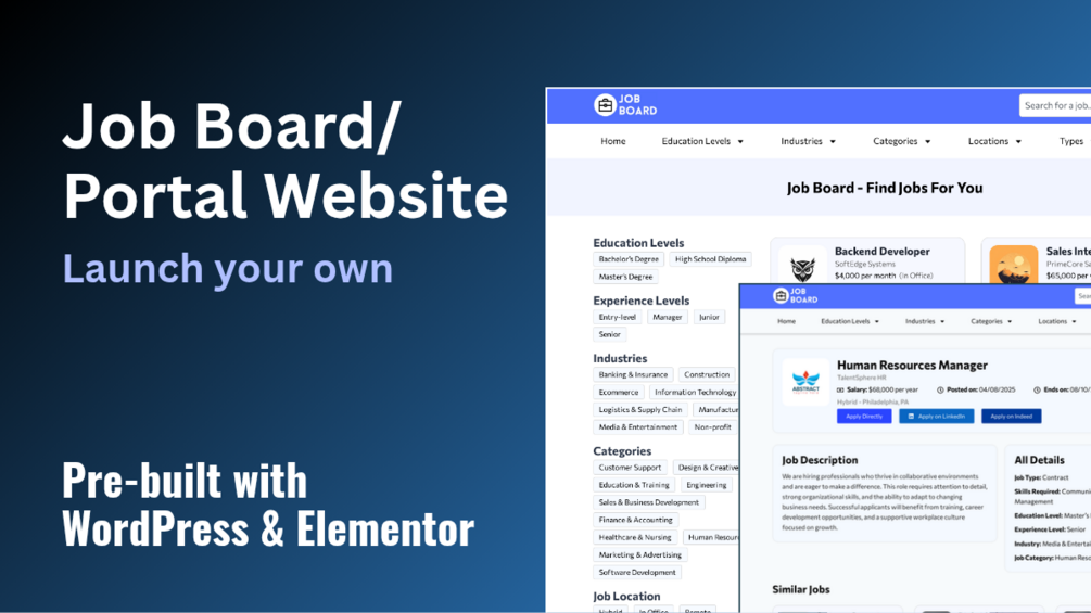 Job Board Pre-built WordPress Website